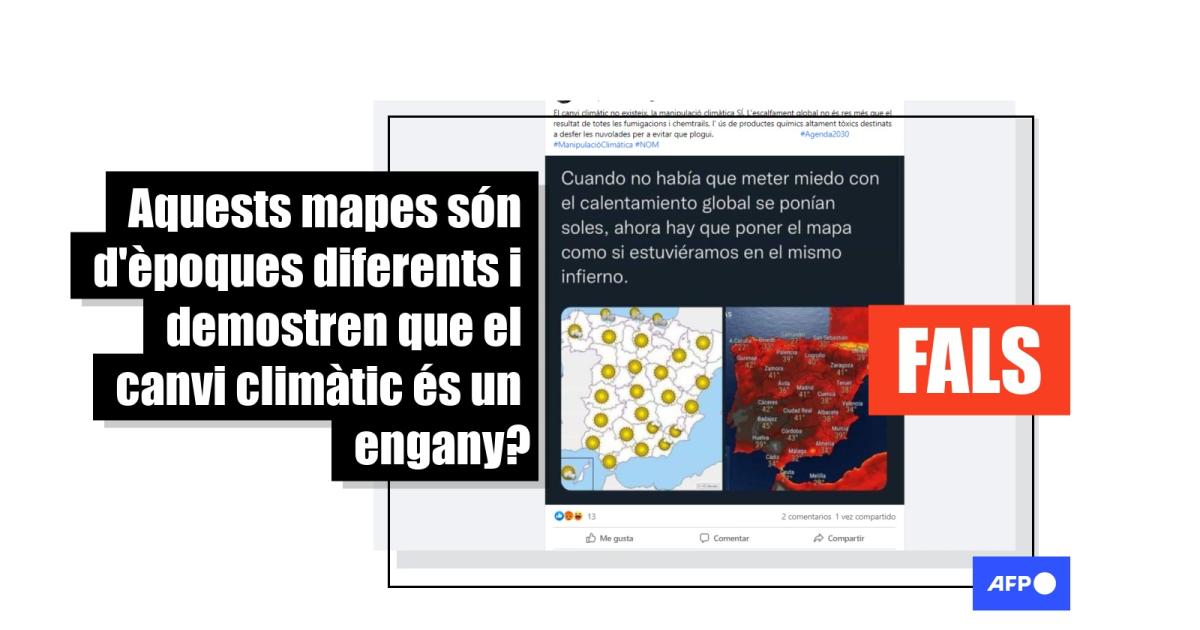 Coincidint amb les onades de calor que han afectat Europa des de l’inici de l’estiu del 2022, milers d’usuaris de diversos països (Alemanya, França i Suècia i Noruega) han intentat negar el canvi climàtic a través de comparacions de mapes meteorològics. La tècnica més habitual que acostumen a utilitzar és agafar gràfics de fonts diferents amb diversos codis visuals i acompanyar-los de missatges que fan creure que els serveis meteorològics han modificat la presentació dels mapes per fer que la situació sembli més greu que anys enrere amb les mateixes temperatures. Una altra estratègia és fer servir informació verídica o antiga treta de context per qüestionar l’existència del canvi climàtic, com ja va verificar aquí l’AFP.