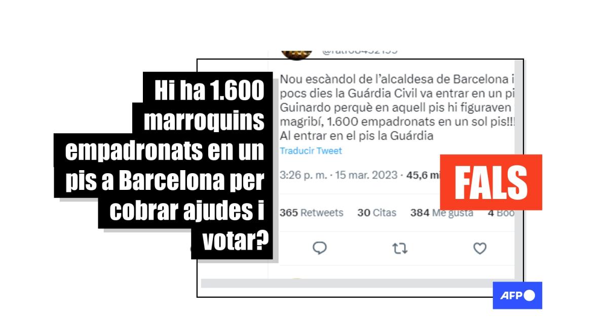Consultat per l’AFP, el gabinet de premsa de la Guàrdia Civil, cos de seguretat que hauria efectuat el registre del domicili al barri d’Horta amb 1.600 persones empadronades, va assegurar que la informació viral és “falsa”. “No hi ha hagut cap operatiu [a Barcelona] en aquell sentit”, va insistir.