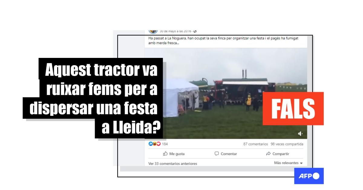 “Sembla que la propietat privada no serveix per a res. Però hi han solucions per als concerts en terrenys privats! Ha passat a La Noguera, han okupat sa finca per organitzar una festa i es pagès ha fumigat amb merda fresca. S’ha acabat el concert”, diu un usuari a xarxes socials que comparteix una gravació d’un minut i 15 segons en la qual es veu un tractor donant voltes a unes carpes i escampant fems.