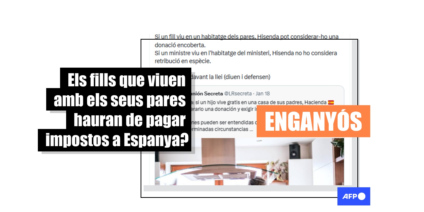 Espanya pateix una crisi d’accés a l’habitatge per l’augment dels preus de lloguer i compra. En aquest escenari, el gener de 2026, usuaris a les xarxes socials van dir que Hisenda començarà a cobrar impostos a qui visqui gratis a casa dels seus pares per considerar-ho una “donació encoberta”. Unes afirmacions similars es van compartir més de 500 vegades. Però els experts consultats per AFP Factual van assegurar que els fills que visquin en una propietat dels pares no han de pagar cap tribut per això, tot i que hi ha matisos si se cedeixen drets d’ús.