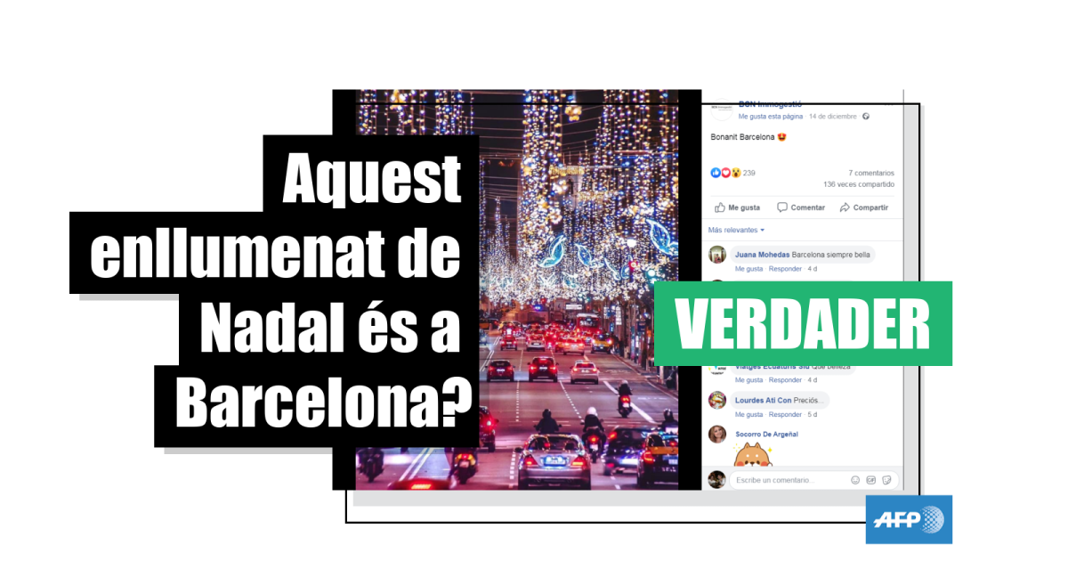 D’altra banda, el fotògraf de l’AFP Josep Lago va enregistrar una sèrie d’imatges dels llums de Nadal a Barcelona. En una d’elles, del 29 de novembre de 2019, els motius decoratius coincideixen amb els que es poden observar a la imatge viral, com són les columnes lluminoses grogues i les ales de papallona de color blau a la seva base. El fotògraf va confirmar que va fer la foto al Passeig de Gràcia, un dels principals carrers de la ciutat.