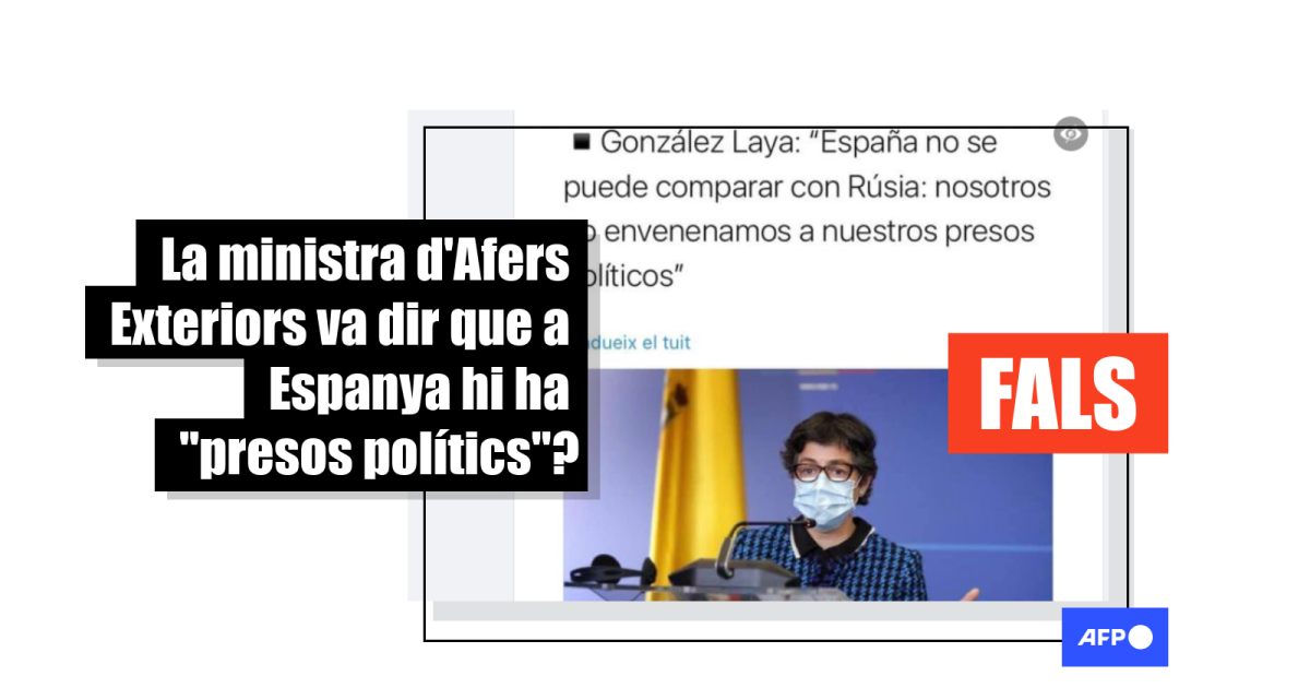 AFP Comprovem no ha trobat cap registre on González Laya digués que a Espanya hi ha “presos polítics”. Fins i tot la ministra, des del seu compte personal de Twitter, citant la verificació de Maldita, va aclarir que es tractava d’una “mentida”.